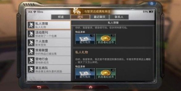 玩家们每天都会有10次的送礼机会,大家可以有选择性的找一些奖励丰富的npc进行送礼,推荐大家选择徐秀,送礼之后就能得到护甲的制作材料,另外还有一个奥西斯,给他送礼也可以,能获得机械材料,都是非常不错的奖励。