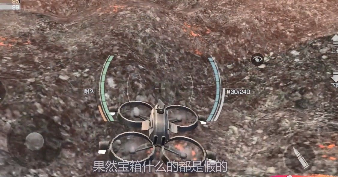 至于我们怎么查看,岩浆中究竟有什么,这就更简单了,只需要拿出我们的无人机,然后进入手动操控模式,操控无人机进入就可以了,这个岩浆是不会,对无人机造成损伤的,我去,距离好像有点不够啊,需要再下去点,这里就行了,然后操控我们的无人机,进入岩浆,见证奇迹的时候到了,果然宝箱什么的都是假的,火山口岩浆下面什么都没有,就只有这冒红光薄薄的一层,感觉这应该是个斩杀线吧,应该在标记一个,踏入者死就好了。