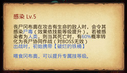 来自深渊阵营的丧尸冈布奥具有将【人类】敌人感染成丧尸的能力。