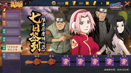 七日签到领忍者活动再次来袭,在4月4日版本更新完成后-4月11日期间,各位学员只需每日进入活动页面签到,即可领取“记忆的碎片”!在背包中使用即可兑换樱【新年】、白【和服】、伊鲁卡、森乃伊比喜这四位活动限定忍者的碎片,千万不要错过了!