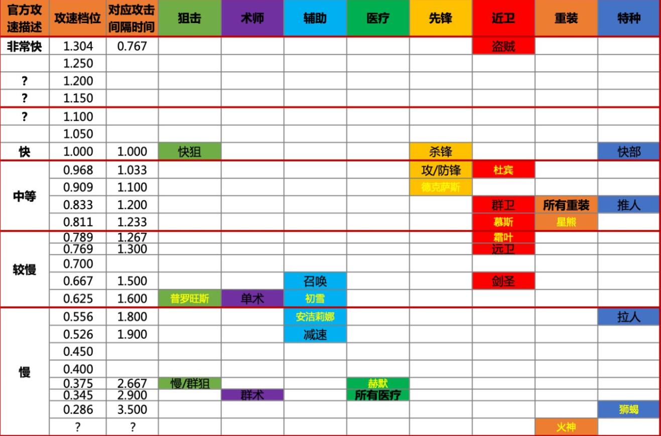 明日方舟子职业对应攻速详解 全子职业攻速都是多少?