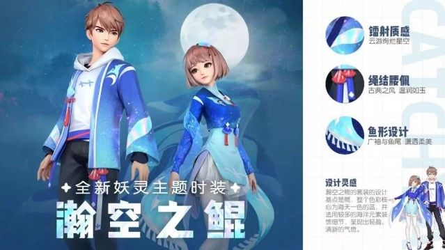 作为《一起来捉妖》全新妖灵主题时装,“瀚空之鲲”巧妙将鲲的外形特征融入时装设计:外衣丝绸材质象征了水的流动,镭射质感的装饰表现了浩瀚的星空。广袖与鱼尾的设计,尽显潇洒柔美。贝壳与珊瑚绳结腰佩,在融入海洋风情的同时,也体现了温润如玉的君子之风。穿上这款时装,白君相信御灵师一定能够化身为自由翱翔天海之间的鲲,无往不破。