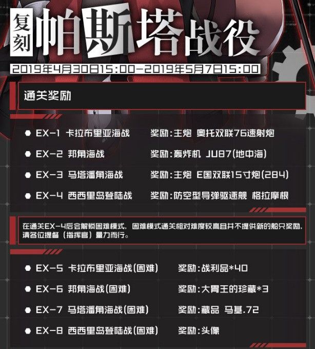 战舰少女R帕斯塔战役复刻攻略:帕斯塔战役复刻奖励一览