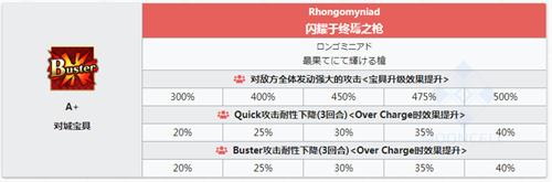 当然自身在高难的表现也是有一定的优势,弱化耐性蛮优秀,加上自身的NP回收也还不错,又有特攻和生存能力。