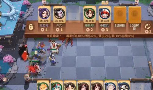 守类棋子:1费孟婆、1费狸猫、2费食梦貘、3费鸦天狗、3费黑童子、4费跳跳哥哥、5费兵佣