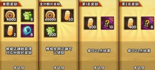 活动规则:学员每天可以回答20道火影忍者相关的题目,答对题目即可获得奖励。全部答对可进入情报排行榜,并获得额外奖励,完成答题的时间越早排名越靠前。来测测你是不是真正的火影粉吧。