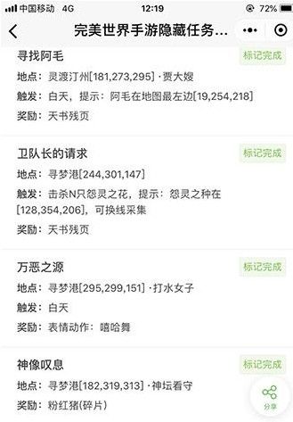 完美世界手游53个隐藏任务位置及奖励攻略汇总