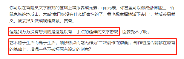 究其原因,作为文字游戏却缺乏文字趣味性,大量使用知名网络语言,如“兔兔这么可爱,怎么可以吃兔兔”等,没有吸引玩家一直点下去的故事剧情,缺乏创意和创新的能力。