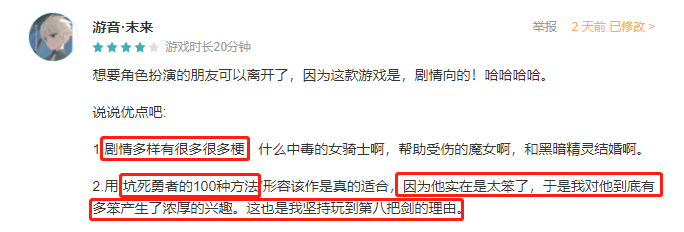 在遍地尽是以“魔王与勇士”为背景进行创作的大环境下,该游戏用过人的脑洞和剧情赢得了玩家的喜爱,TAPTAP 超40万人关注,在5000多条评价中拥有高达9.4的评分。即使看穿了游戏的套路,即使游戏的UI设计使画面显示不完整,玩家还是有点击不同的选项了解剧情的好奇心。