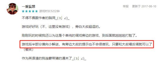 事实上,仅凭这几款各有千秋的高分沙雕游戏,我们就能看出,画风有趣只是吸引玩家视线的前提条件,剧情反转、玩法创意、脑洞大开、意想不到、短小精悍(虽然太短不过瘾),每过一关都能得到不同的心情体验——这些,才是沙雕游戏获得玩家喜欢和称赞的真正原因。