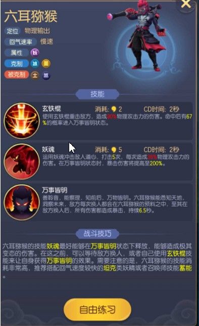 六耳猕猴就是比较暴力的妖灵,在技能详解图上能很清楚的看见两者之间的差距。