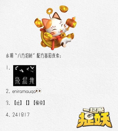 一起来捉妖招财猫基因线索是什么?招财猫基因线索大全