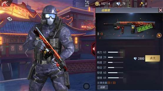 如图,这是橙色品质的征服者属性面板,可以看出:前者威力、射速、稳定高于后者,主弹夹数低于后者,其他保持一致,即:论输出伤害,前者占优;论续航时间,后者占优。