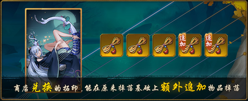 在本次限时上线的活动坊市中,降妖师们还能够兑换珍贵的活动限定SSR拓印“冰弦泛月”,当出阵妖灵装备此拓印后,额外追加所有活动道具掉落堆数,最高可以额外追加100%的掉落堆数。