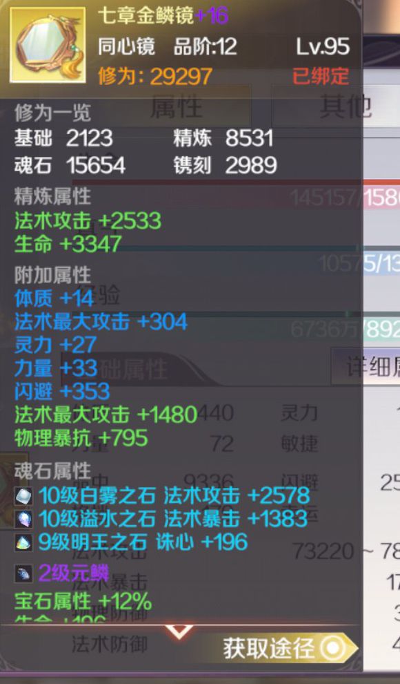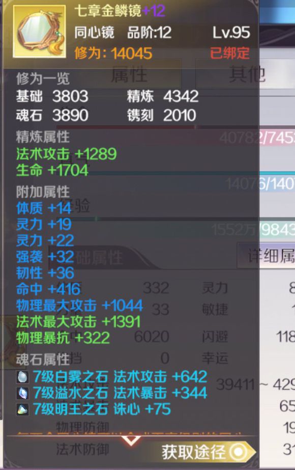 镜子宝石镶嵌,1号位攻击宝石,2号位攻击/暴击,3号位诛心/命中,镌刻属性,最大物理攻击+物理暴抗。