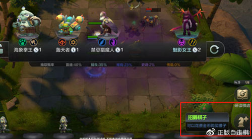 (4)在招募面板的下方会展示抽取各品质棋子的概率;