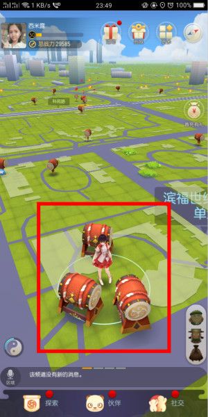 这时候,我们可以点击左下角“探索”,再选择“申请祈愿鼓”。
