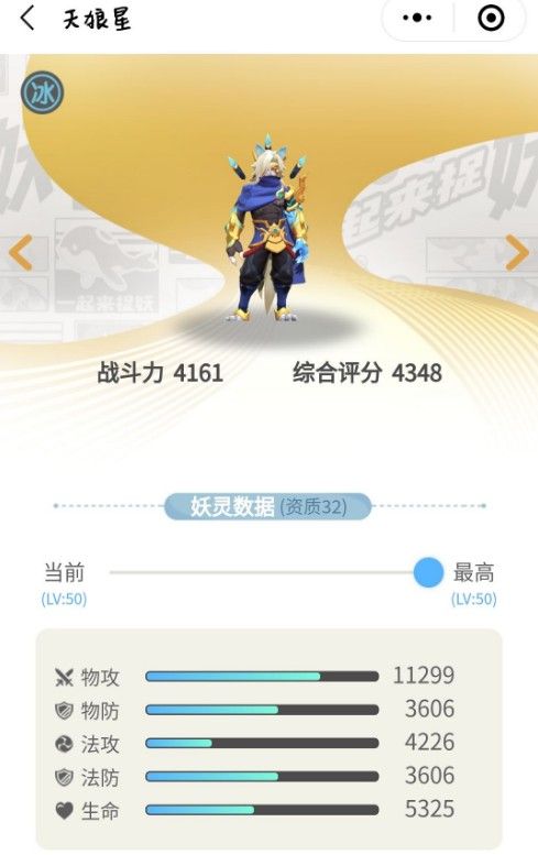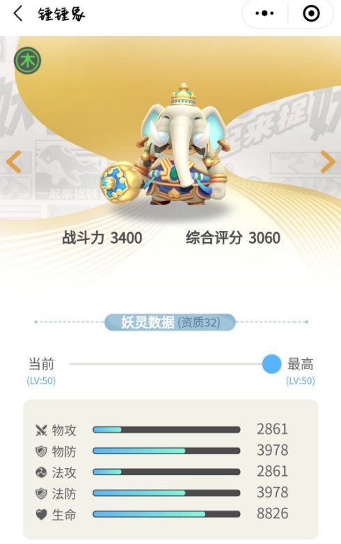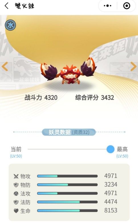 雷娃的面板分配的非常恶心,攻击多出这么多,双抗低,生命低,法攻没达到12299这个极限值。从面板看这是一个很脆,输出一般的妖灵。但是它和红娃一样,技能的优秀弥补了所有不足。