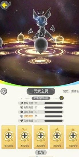 还有需要金、木、水、火、土五种不同的五行妖灵升级到20级后合体成一个元素之灵。