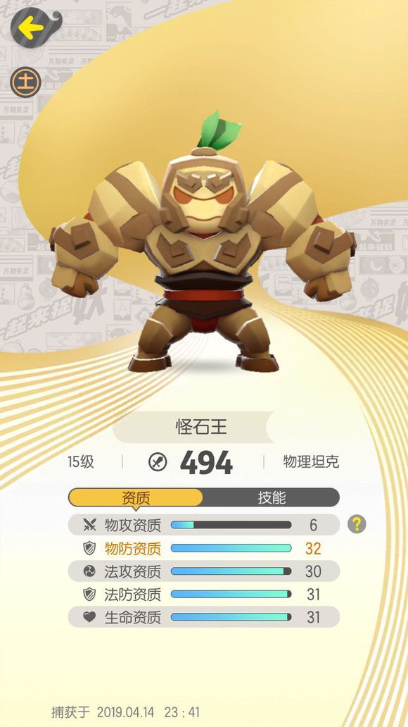 巨灵神(石灵),所谓活着才有输出,任何战斗死了都是没意义的,先看面板。
