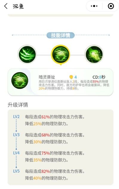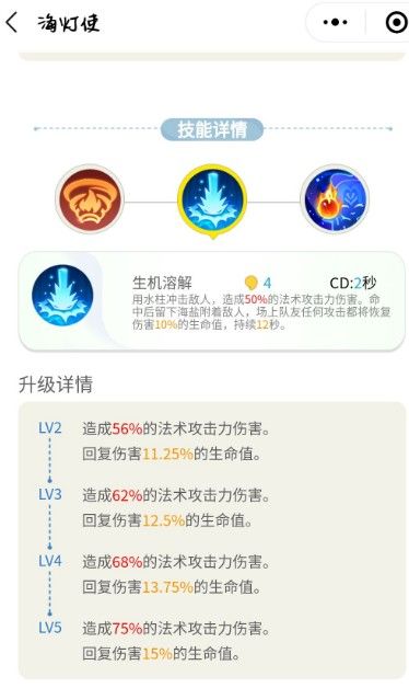 可以很清晰的看到,海灯使在全32资质时各项属性的值,这就是面板值,这个值的大小觉定了妖怪的强弱。技能效果,下面海灯2技能为例: