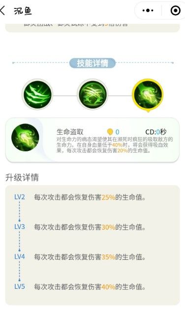 绿娃神被动吸血,生命低于40%获得吸血效果,造成伤害的40%恢复自身血量。输出一时爽,一直输出一直爽,配合巨灵神的盾,可以达到不死不灭的效果,简单很好理解,此处不做解释都懂。