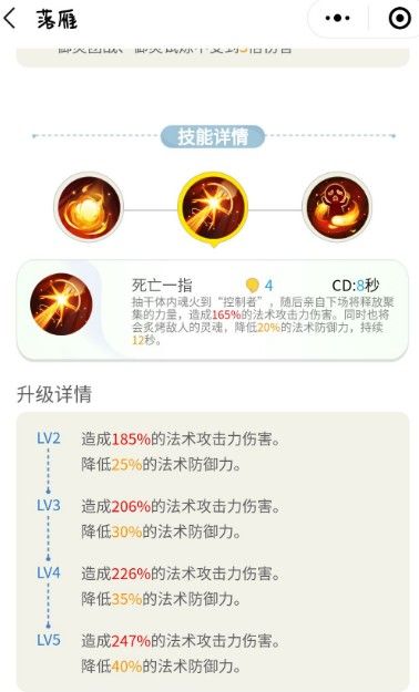 专属神技死亡一指,247%的法术增伤!命中必降低对手40%法抗。cd8秒,需要蓄力,这是一个概念性数据。首先247%的法术增伤,使其单体技能的伤害达到了史无前例的地步,而必定降低对手40%法抗持续8秒,可不是247%+40%伤害那么简单。举个例子,比如对手法抗是100,我造成247伤害。但如果法抗降低40,不是造成287伤害那么简单,而是造成247+247x40%伤害,就是345点伤害。 数学好的应该懂了,实际造成伤害是345%的法术伤害。
