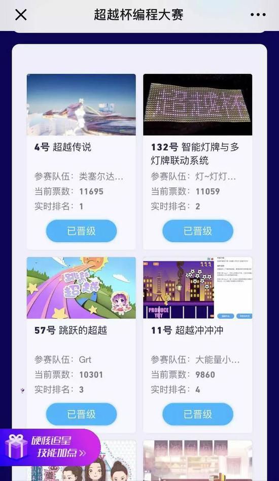 由杨超越粉丝组织的编程大赛“超越杯”,目前已经结束了初赛投票环节。淘汰掉劣质鬼畜、搞笑类作品后,格斗类冒险游戏、剧情类养成游戏,粉丝应援工具App开始了神仙打架。曝光意味着流量与关注,超越杯之后,他们的作品很可能凭借这波曝光走上商业化的道路。