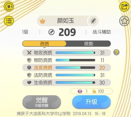 颜如玉的定位是一个辅助妖灵,虽然标红的资质是法术攻击,但是实际上颜如玉的双攻资质都是比较没有用的,作为辅助反而生命和双防更加关键