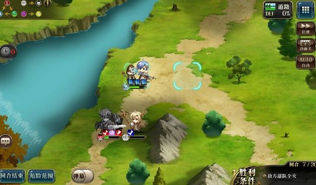 艾尔文站到骑兵危险区外面,引骑兵、枪兵下来。之后艾尔文打掉骑兵,海恩往左走。