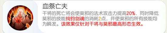 | 在有干将的队伍中配合输出最佳,尽可能使用干将的轩辕炎阳斩对敌人施加剑气,然后快速切换莫邪上场用纯钧剑魂输出并使其触发额外伤害。最高觉醒形态时,你也可以故意让干将先去送死,随后莫邪将会成为一个实力强劲的法术输出。 |