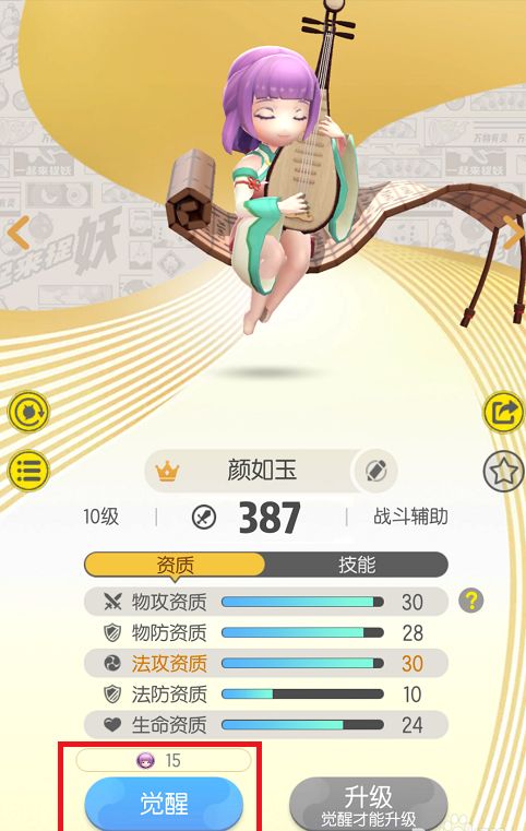 到达十级后,我们需要再使用15个符印来觉醒颜如玉。