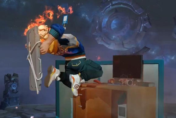 8、一个键盘+一个鼠标指的是典韦的战令皮肤,俗称“键盘侠”,一言不合就砸电脑。