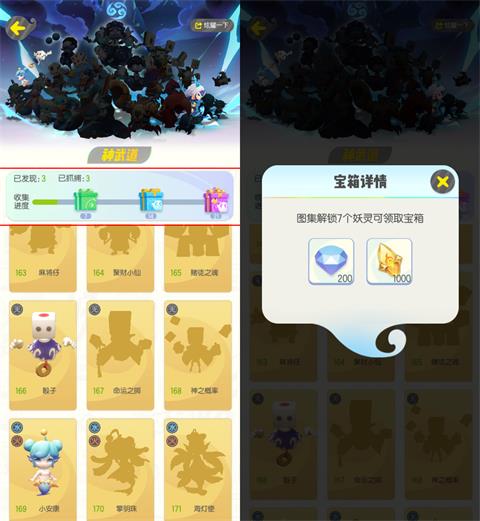 在神武道图集中,只要御灵师每获得一只新妖灵时,就会在这里显示出来,并且可以领取新妖灵的奖励。当御灵师收集到一定数量的妖灵,还可以领取收集的相应奖励。