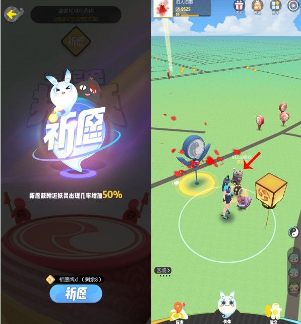 除了这些随机出现的妖精外,御灵师还可以利用道具来吸引妖精的出现。比如祈愿牌,在鼓点中,放置祈愿牌,周边就会有花瓣飞舞,吸引妖精的前来。