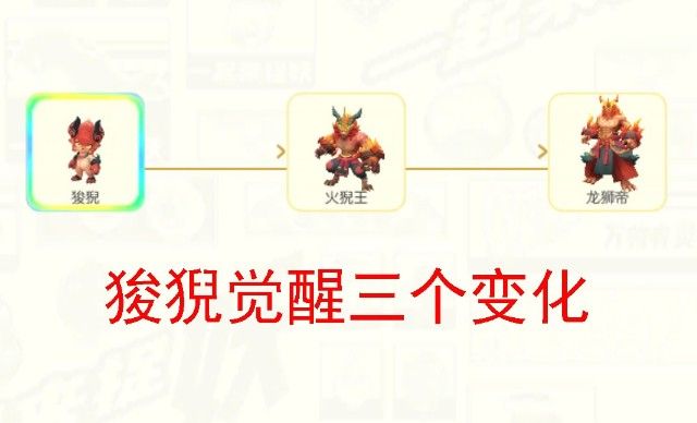 狻猊外表是一个萌萌,有些两个角的妖灵,御灵师可以通过升级妖灵来进化到下一个阶段,如在升级到10级时,觉醒之后就进化为火猊王,一个雄威十足的王;在升级到30级,就觉醒进化龙狮帝,比之前的造型少了萌,多了威严~