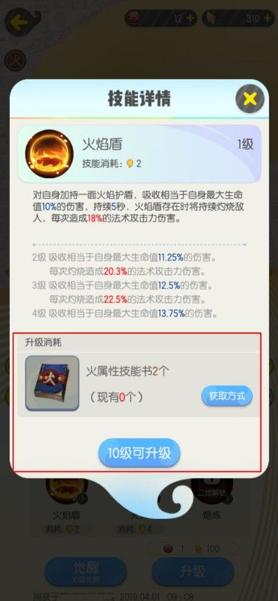 每个妖灵在10级之前都是只有一个技能,随着妖灵升级,技能逐渐开启。而技能开启后,妖灵的物理或法术伤害就会提高。技能可以升级到5级,达到一定的条件就会开启升级图标,比如升级2级时,需要狻猊达到10级,烈属性技能书2本。御灵师就要去训练师获取烈属性技能书才能进行升级技能。
