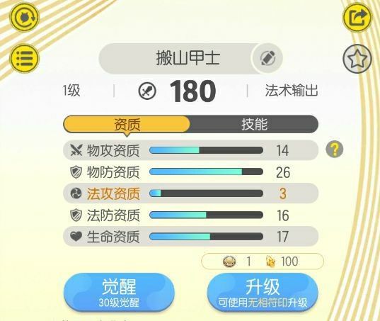 在准备了大量的穿山符印后,我们可以进行穿山甲的升级,每10级就可以觉醒。首先花费10个符印来将穿山甲升级到搬山甲士,而后以同样的方式升级到卸岭力士,目前来说,这是比较简单经济的办法了。