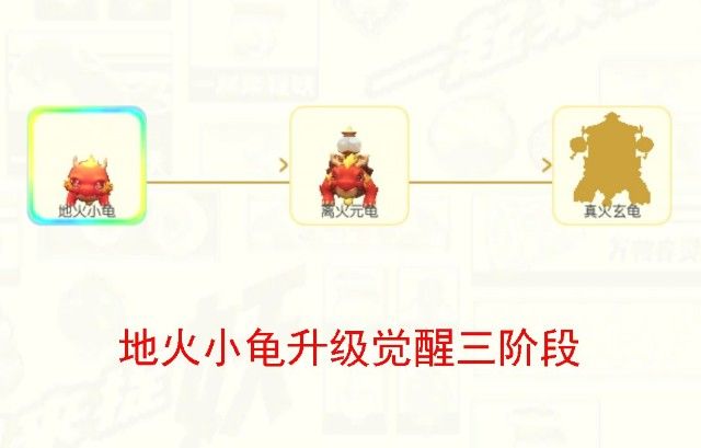 地火小龟是一个可以觉醒进化的妖灵,当它升级到10级时,就可以利用15个地火小龟的符印进行觉醒,觉醒之后就进化为离火元龟;当升级到30级,再利用符印觉醒进化为真火玄龟。