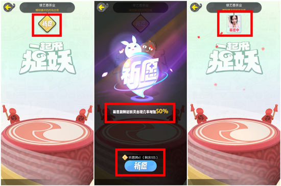 击打祈愿鼓可以获得免费的资源补给,比如:封妖灵珠、五色土、静心果、翠玉莓、药材等重要补给品。最重要的是,祈愿鼓可以产出灵石喔。