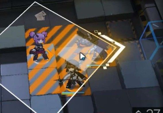 由于中间的下水道口并不会刷出弩手敌人,所以梓兰可以在图中位置放心的落下,最好是让梓兰的攻击范围能覆盖到敌人出口右边第一个格子。因为大盾哥背着一身重甲走下水道累成狗,出来之后会在种种情绪下呼吸几口新鲜空气才继续移动,我们得利用这段时间最大化我们的输出。