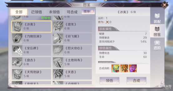 最后,全新的近战物理职业武侠的攻击模式十分独特。针对他的自身特点,首先我们推荐增加力量、物暴和普攻间隔缩短的《冰夷》,因为武侠随着攻击时间的拉长,输出会越来越高,因此在两个技能释放的间隔,穿插多次普攻能最大化输出。同样《坐忘禅》也有同样的效果。另外,因为属于近战职业,增加一定的抗性也是必不可少的,因此搭配一本《双飞翼》也是不错的。最后增加生命值和物理攻击的《盘古》让我们自身的属性变得更加全面。