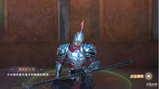 不要忽略门口奄奄一息的士兵,点击交谈士兵会给我们一些提示“小心紫色鬼手和蜘蛛的毒液”,这正是后续我们会遇到的挑战。