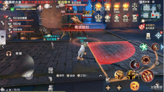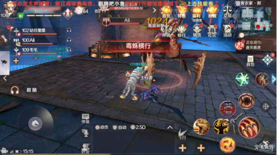 然后,我们会遇到第一个BOSS“鬼面狼蛛”。在打这个BOSS时,妖兽一定要冲上前去持续使用技能吸引鬼面狼蛛,为队友创造良好的输出环境,即在鬼面狼蛛的身后持续输出。