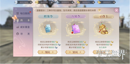 相信经济条件非常的好的小伙伴终归属于少数,所以这个特惠的活动就非常的超值了,毕竟元宝这一货币在游戏中的重要程度是不言而喻的。其中的月卡和成长基金就相当不错,到了游戏的后期可以给大家带来非常可观的元宝收益,大幅提升自己的战力水平。