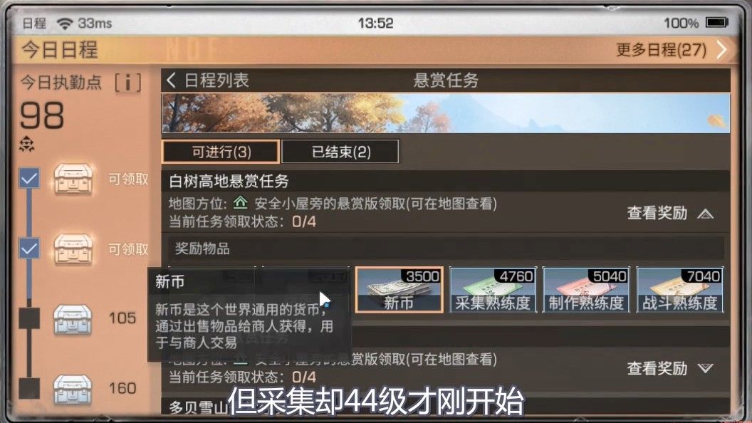 明日之后最近有小伙伴,私信我说,新日程的熟练度少了很多,完全没法玩了,怎么说呢,我想很多人,应该就是看见,地图悬赏任务给的熟练度少了,以及南希、大学、巡逻,熟练度都被削减了,才会有这样的想法吧,我九庄的这个号,30执勤点,可以获得采集熟练度39270点,制作熟练度73920点,战斗97020,仅仅是完成一个地图,就可以获得这么多,接下来的60、105、160执勤点,我就不一一介绍了。