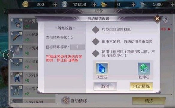 第一种方法先打开一瓶酒喝掉喝完,第二步把你要精炼的装备点开,上面有一个自动精炼,你调到你想要的精炼等级然后点击自动精炼到你想要的等级,接下来可以把手机放到一边点燃一支烟抽完之后再拿起手机。不过,成功率自己体会。