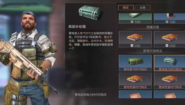 四、营地升级到电力时代之后,就可以在夏冬凉处,购买到高级补给箱,也是有机会能够开出来的。
