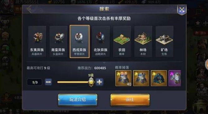 世界上的异族共有四种分类:东夷异族,南蛮异族,西戎异族,北狄异族,讨伐成功后会掉落英雄装备碎片和道具
