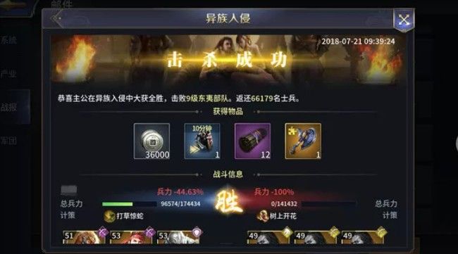讨伐异族的胜负结果,会通过邮件战报发送,玩家可以清楚查看详细战斗情况